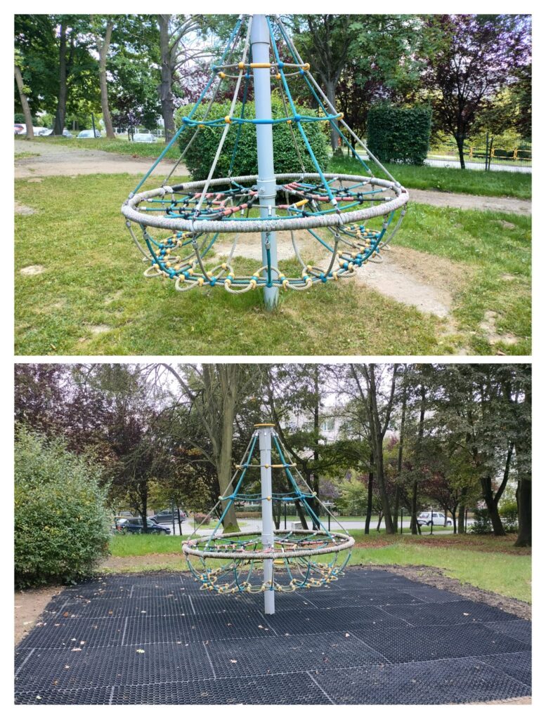 Z ogromną radością informujemy, że zadanie na wykonanie bezpiecznej nawierzchni z mat przerostowych pod jednym urządzeniem ogrodowym, zostało wykonane przez firmę FLEXIFALL.